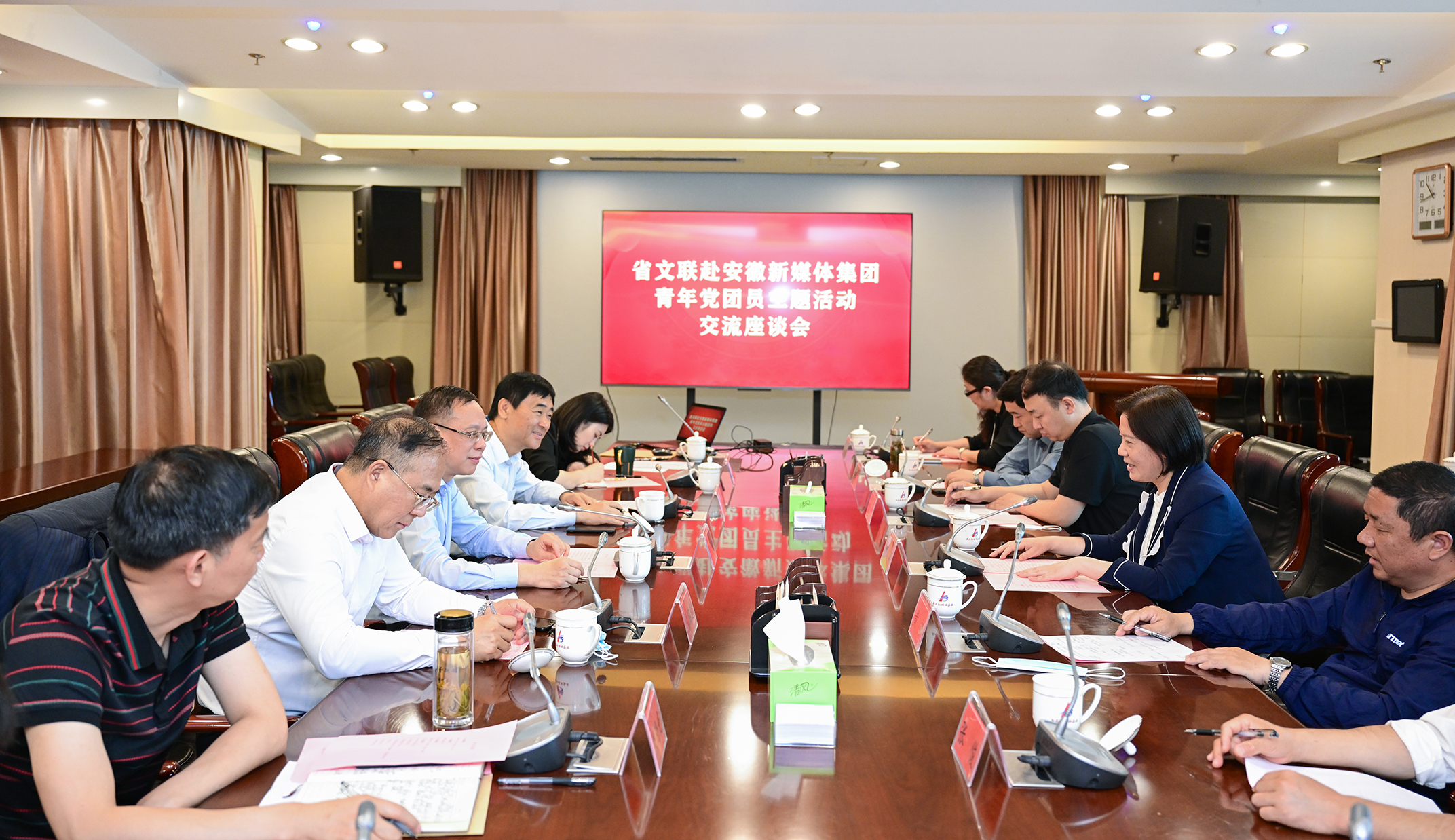 隨后,雙方就“黨建如何助力企業(yè)高質(zhì)量發(fā)展”和《品牌安徽》欄目建設(shè)等方面展開(kāi)深入交流。