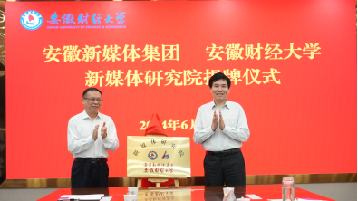 報(bào)告會(huì)前,安徽新媒體集團(tuán)、安徽財(cái)經(jīng)大學(xué)新媒體研究院揭牌儀式舉行,章理中、虞寶桃共同為新媒體研究院揭牌。下一步,新媒體研究院將圍繞應(yīng)用型師資隊(duì)伍打造、專項(xiàng)課題研究申報(bào)、實(shí)用性教材編撰等方面,進(jìn)行創(chuàng)新性探索和實(shí)踐,為新媒體行業(yè)高質(zhì)量發(fā)展增添智慧和力量。會(huì)后,在虞寶桃的陪同下,章理中一行參觀了安徽財(cái)經(jīng)大學(xué)校史館。(記者 李旭 劉職偉)